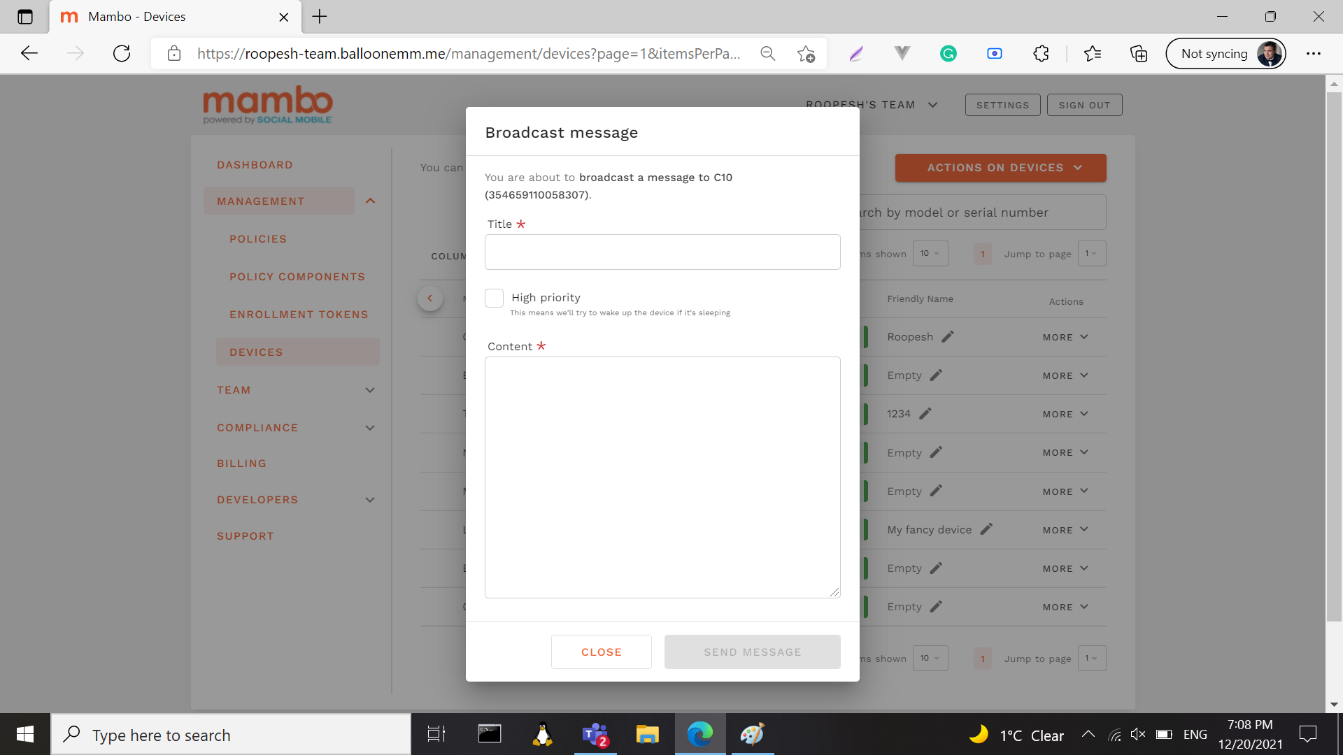 Lastly, the newest release also includes broadcast message functionality, meaning the ability to send messages to individual or various selected devices, with the click of a button. So, if a user deploys the new up-to-date device widget on their custom dashboard to determine if all devices in their fleet have implemented the latest upgrade and finds devices out of compliance, they can easily send a message to those devices reminding them to update and track the results.